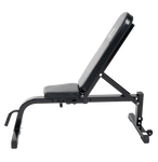 The Orbit Adjustable Weight Bench is the next evolution in adjustable weight benches at home. Use it alone or with a power rack or squat rack. The angle of the backrest is adjusted along the central rail, with 8 spring loaded pop pin positions, including flat, 45 and 90 degrees. The Angle of the seat is also adjustable, with four raised positions, plus flat, adjusted by pin rod. Made of strong steel and durable materials, the bench is ready for the toughest of workouts. The convenient handle and transport wheels make moving, setting up and removing this bench one seamless, easy motion.