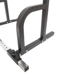 The bar rest comes with new and improved safety hooks to lock barbells in place once user has finished their workout. This unit also comes with new and improved screw pin adjusters making the machine tight and secure for all weights, lifts and presses.