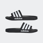 From the pool deck to the shower to the couch, these slides are made for the work-hard-rest-hard lifestyle. The slip-on construction gives you a snug fit that's easy to kick on and off as needed. Lightweight cushioning keeps your feet cradled in all-day comfort. The adidas logo and 3-Stripes design complete the iconic Adilette style.