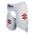 Contoured thigh guard with extra-large inner thigh pad for an all-in-one lower body protection system