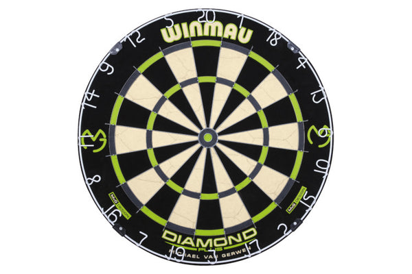 Geared for the modern game at the most advanced level, this refined triangular wire MvG Diamond Plus gives you dramatically improved durability and playability featuring Winmau’s high tensile Dynamic Sector Wiring. Made to World Darts Federation standards, this tournament approved dartboard is finished with hi-visibility scoring zones and anti-glare number ring for world class performance.