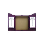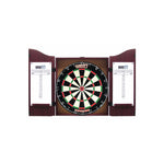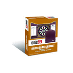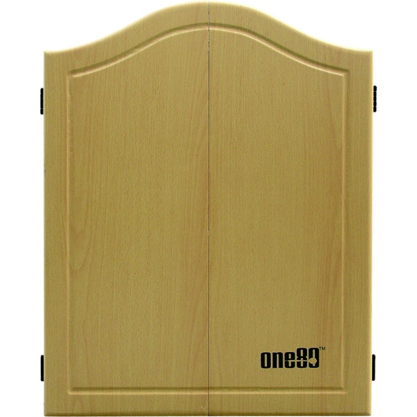 One80 Solid Wood Darts Cabinet, Walnut Colour With Felt Backing This is a good quality solid wood frame cabinet, no veneers or laminates which can eventually peel. The chalkboard inside each door allows for easy score keeping and the dark green felt covered backing aids noise suppression and looks the part. Includes all necessary hanging fixtures and screws.