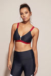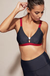 The August Crop is a bit of a glamour girl, so if you like a little drama… this is the crop for you! Bold cherry red straps and underbust band contrast against the subtle navy hue, while a little pop of white brightens the look. We recommend pairing with the Turning Heads Tight and a pair of white sneakers for a statement top-to-toe look.