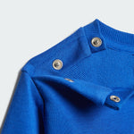 Playful and comfortable, this infants' adidas tracksuit is ready for busy days of adventure and exploration. Soft French terry fabric keeps them cosy, and fun graphics add an element of joy. Snap buttons on the shoulder make it easy to get them dressed and ready for the day. By choosing recycled, we are able to reuse materials that have already been created, which helps to reduce waste. Renewable materials choices will help us to remove our reliance on finite resources. Our products made with a blend of recycled and renewable materials feature at least 70% total of these materials.