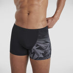 Make a statement in Boom logo prints. Celebrating the Speedo brand, our V-Cut Aquashort showcases our iconic Boom logo in a 'shattered' print design with striking shades of grey and black. Featuring integral support and engineered V-cut panels for enhanced comfort and security, the aquashort includes a drawstring waist for a tailored fit. Designed to be durable and better for the environment, it's made from our new ECO Endurance+ fabric which is 100% chlorine resistant, quick-drying and made from 50% recycled materials.