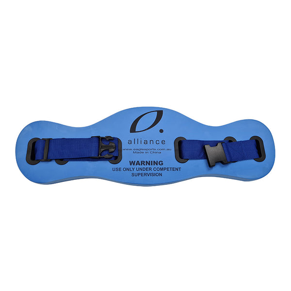 This Aqua Belt suspends body in upright position in water at shoulder level, with the swimmer's head remaining above water. Intended for effective low impact workout.