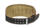 6" width tapers for fitInterior foam padding and suede lining for comfortHeavy duty dual-pronged steel roller buckle locks belt into position