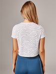 Prepare to reach new heights in the super soft 'elevate air' workout crop tee. Constructed in the exclusive RB knitted jacquard Zulu mesh for the ultimate in breathability, moisture wicking, comfort and fit. Pair this back with your fave ab-waisted leggings and hit the cardio, pilates mat or gym floor.