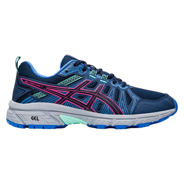 Tackle treacherous terrain in the Asics GEL Venture 7 Women's Running Shoes. GEL technology is integrated into the rearfoot couples with the EVA midsole to absorb shock underfoot and cushion your step. Your feet will be protected and supported over rocky terrain by the sturdy upper which is crafted from synthetic leather. Extra comfort on the trail comes from the Ortholite sockliner which moulds to the foot to comfortably cradle your foot.