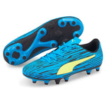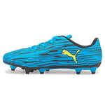 Lightweight synthetic materials used across the Puma Rapido 3 Kids Football Boots prime them to be comfortable and durable, ready to last a long football season. A classic low-cut construction delivers a familiar fit for young players. Ideal for young players who mix up games on turf and synthetic football pitches, the TPU outsole is built to perform on both.